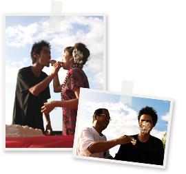 ケーキカットの後は、最初の一口を新郎新婦がお互いに食べさせあうアメリカ流の儀式「ファーストバイト」でお祝いしました。バイト(bite)とは英語で「かじる」の意味。食べ物を与え合うということで、お互いに養い合っていくという意味合いが込められています。